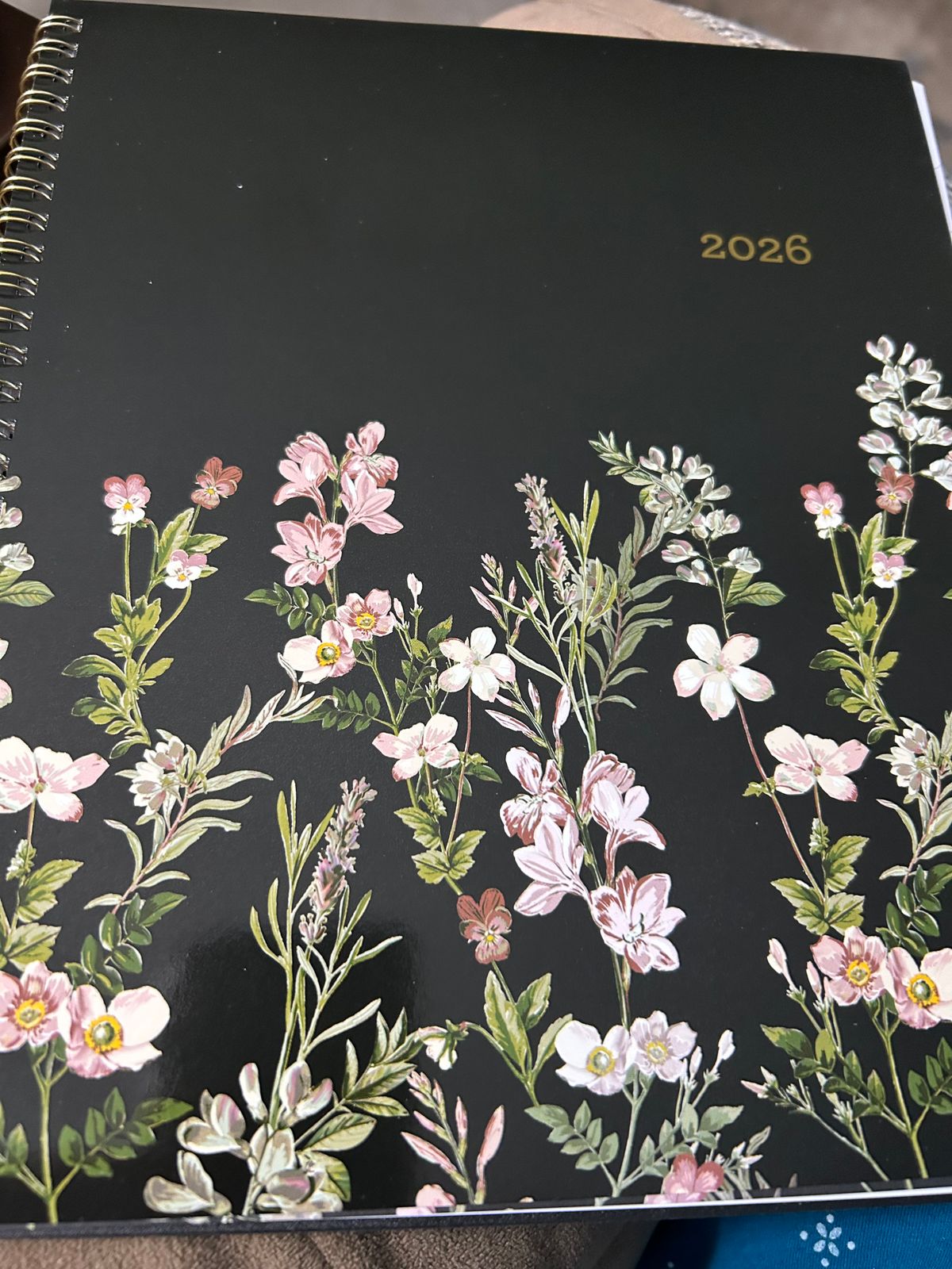 January 2026 - December 2026 monthly planner from Blue Sky features beautiful floral cover design with black background and gold binding