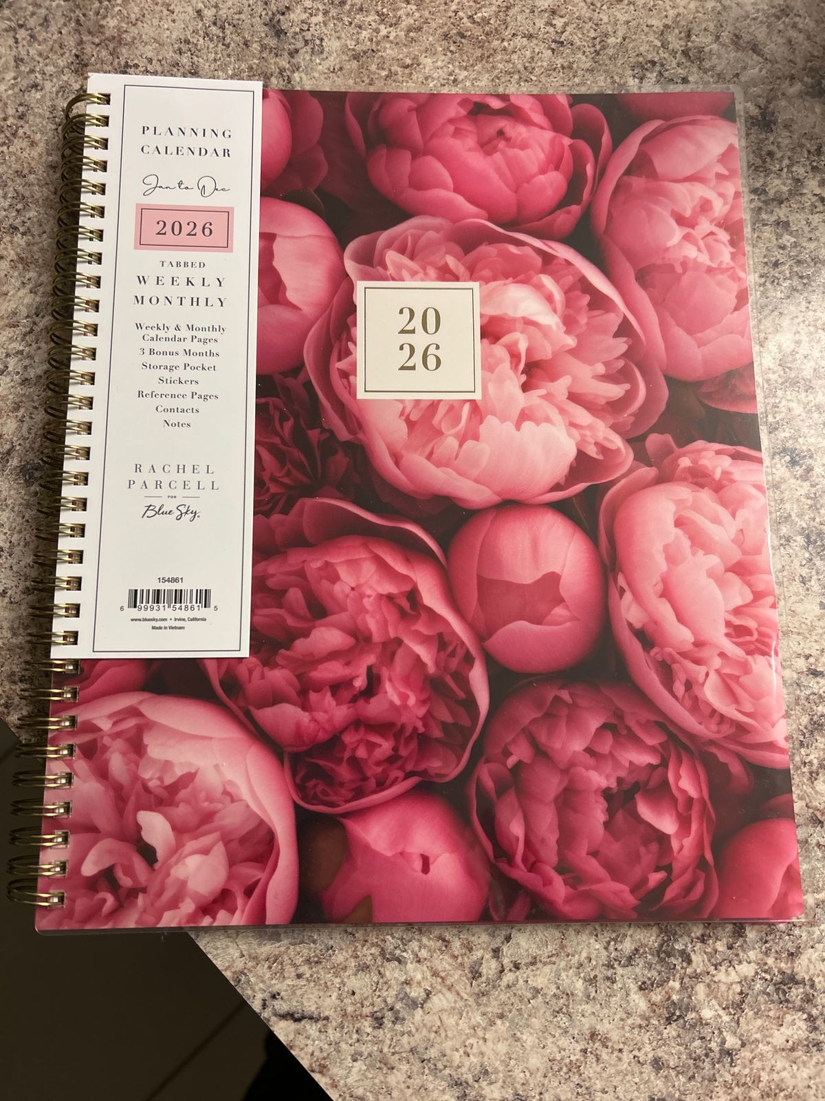 This Rachel Parcell for Blue Sky 2026 planner has unlined layouts, cute NEW stickers, and a clear plastic storage pocket.