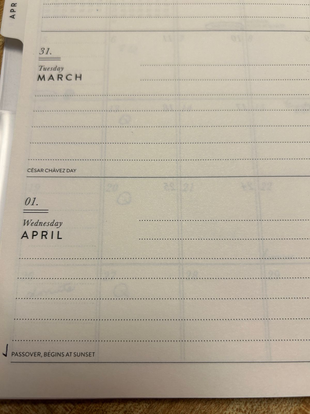 How about a couple of month pages into next year instead of so much of last year, at least a shared page of Jan and Feb of the next year.